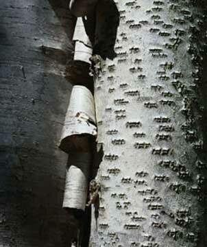 - Birch bark strips were sewn together and attached to the wooden frame using spruce root as a lace. The seams were sealed with spruce gum.
