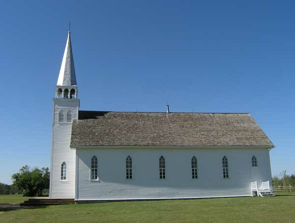 ![]() Below the church, in the distance the white specs of where the village of Batoche once stood. From here Métis men, women, and children fled for their lives, many into exile in the United States. |